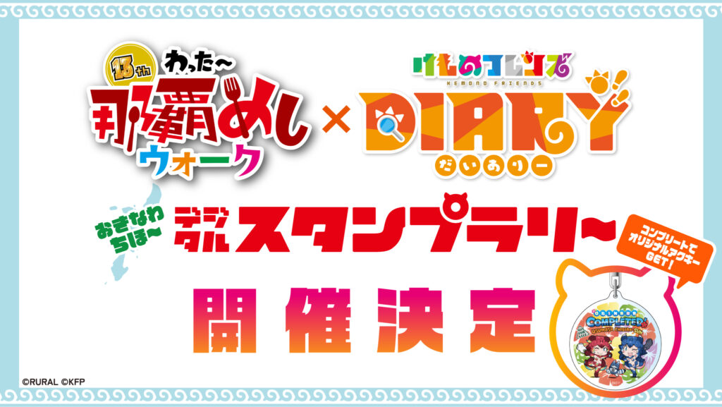 わったー那覇めしウォーク対象店舗コンプリートで、オリジナル描き下ろしアクリルキーホルダーをプレゼント。詳細は「けものフレンズDiary」でお伝えします。